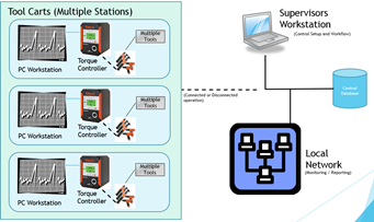 Manage work-flow and receive real time process control with torque tools or other forms of instrumentation
